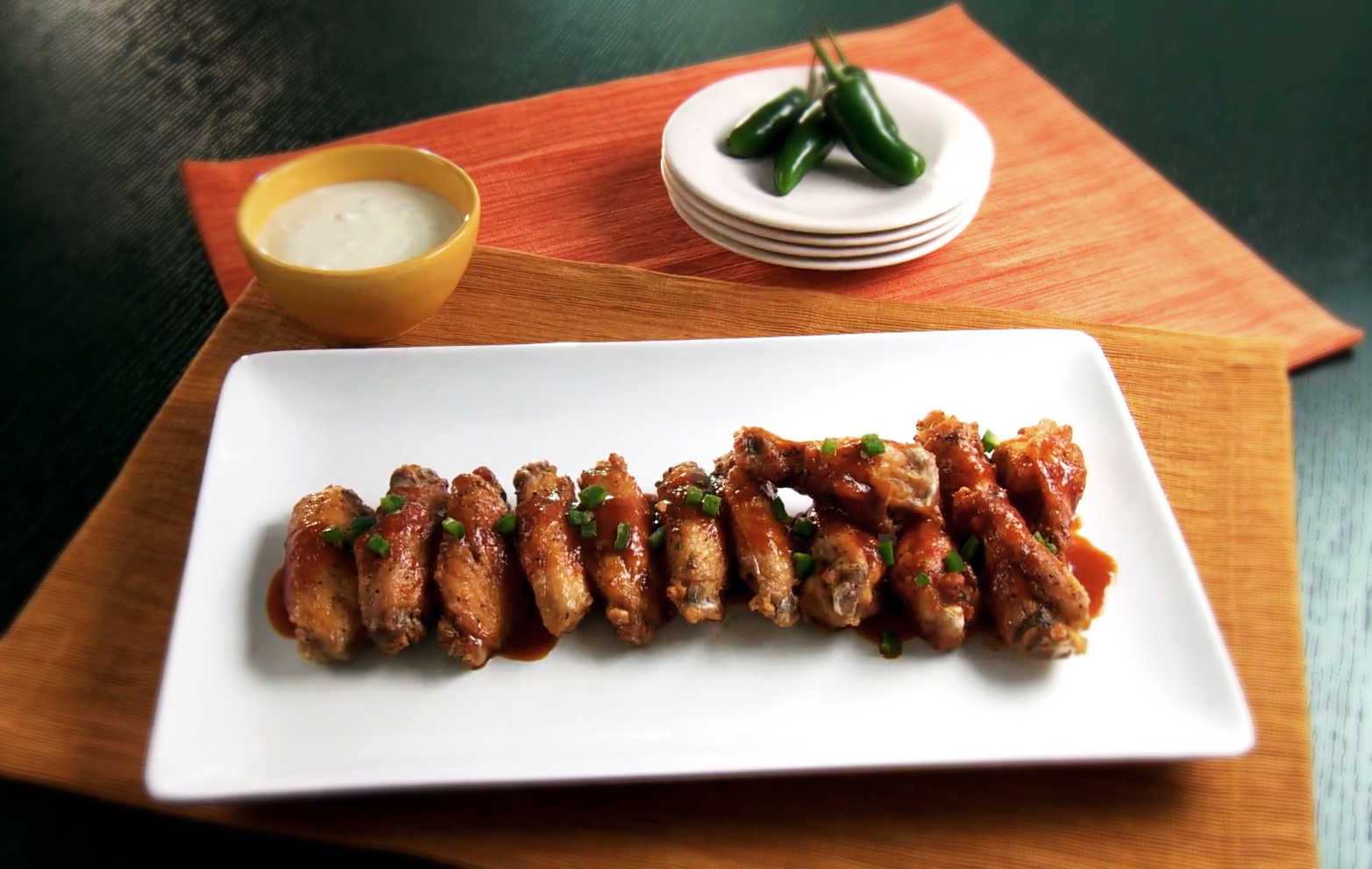 Fried wings drizzled with a full flavored sauce providing a sweet yet bold taste, and just the right amount of kick from the jalapeño and garlic.